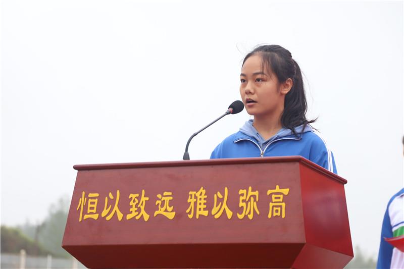 學(xué)生代表1802班姚湘粵同學(xué)立下錚錚誓言,要像雄鷹直沖云天,像水手乘風(fēng)破浪,以汗水澆灌,用智慧耕耘,奪取六月桂冠。