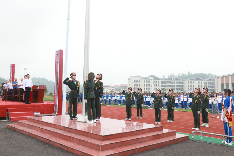 首先舉行莊嚴(yán)的升旗儀式,奏唱國歌,五星紅旗冉冉升起,拉開了典禮的序幕。