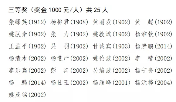 三等獎(jiǎng)學(xué)金名單如下: