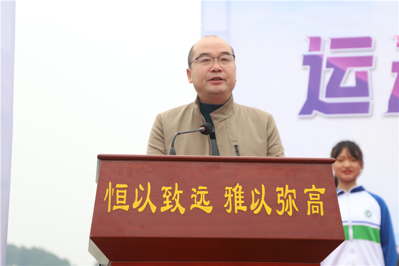 縣教育局副局長(zhǎng)楊清輝先生講話,他強(qiáng)調(diào)參加體育運(yùn)動(dòng)不僅僅是一場(chǎng)體能、技術(shù)、水平的較量,是對(duì)同學(xué)們的生活品位、精神品格、意志品質(zhì)的一次大檢閱。運(yùn)動(dòng)不僅僅是為了健康,它更是充滿靈動(dòng)的生活時(shí)尚,是一種充滿韻律的生活情趣,是一種充滿活力的生活態(tài)度。